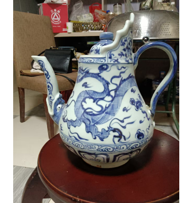 元青花龙纹仿西方金银器多穆壶值得收藏,因它是元代中外文化交流的实物见证——仿西方金银器造型却饰以中式龙纹,体现了当时工艺融合的独特性;元青花本身存世稀少,龙纹题材又属经典,加上多穆壶这类器型罕见,集历史文化价值、稀缺性与工艺融合美感于一体,故而成为收藏珍品。