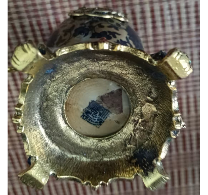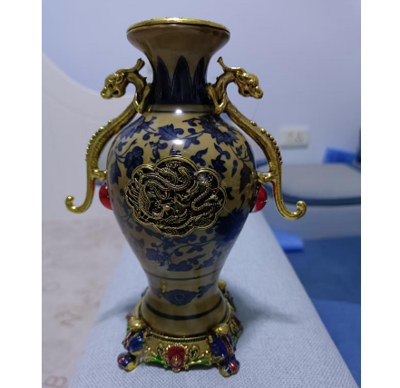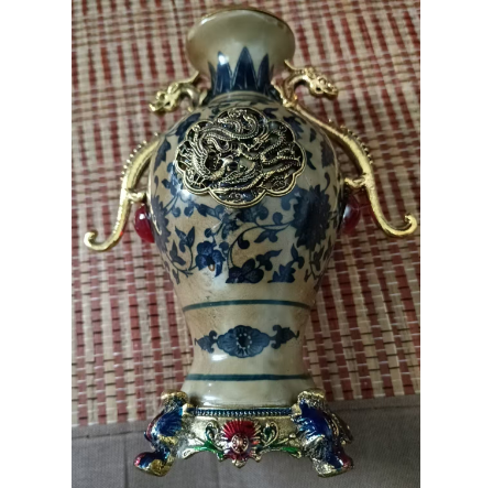 清乾隆铜镶青花莲纹带托瓶
