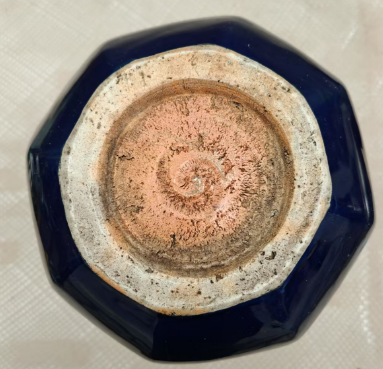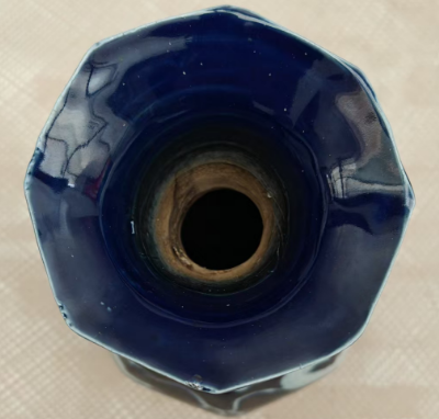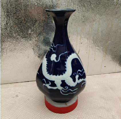 霁蓝釉八棱玉壶春瓶作为明清官窑单色釉瓷器中的精品,集工艺美学与历史价值于一身。其霁蓝釉色如深海凝脂,釉面莹润肥厚、色泽均匀沉静,是古代制瓷业高温颜色釉技术的巅峰体现;八棱造型线条规整利落,既保留了玉壶春瓶的经典柔美,又以棱角凸显端庄风骨,成型难度极高。此类器物多为宫廷用瓷,烧造标准严苛,存世量稀少,加之釉色历经岁月愈发温润,纹饰与器型中凝结着特定朝代的审美风尚,使其成为瓷器收藏中兼具工艺稀缺性与文化底蕴的珍品。
